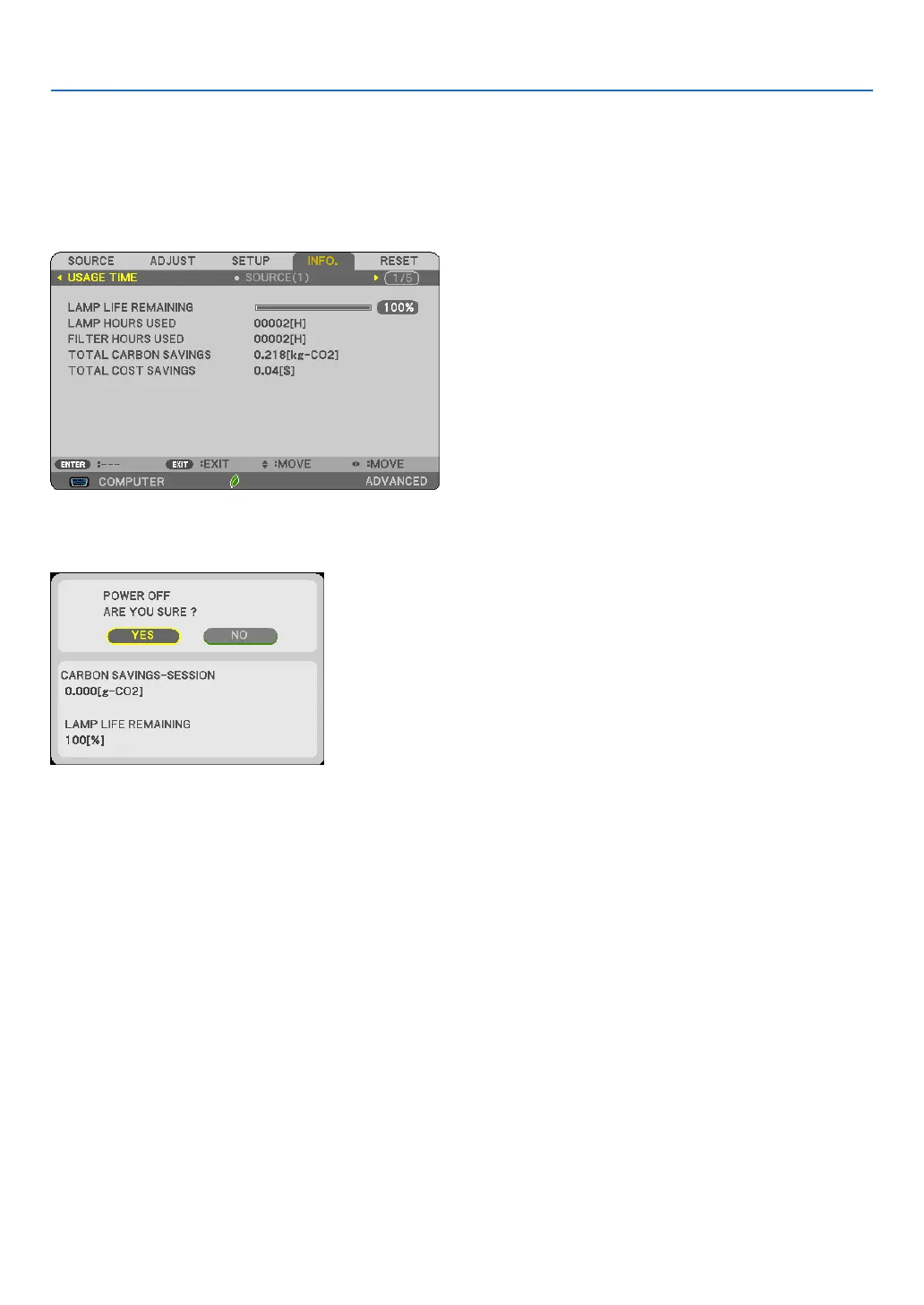 changingtoECOMODEimmediatelyafterthetimeofpower-onandthetimeofpower-off.The[CARBONSAVINGS-