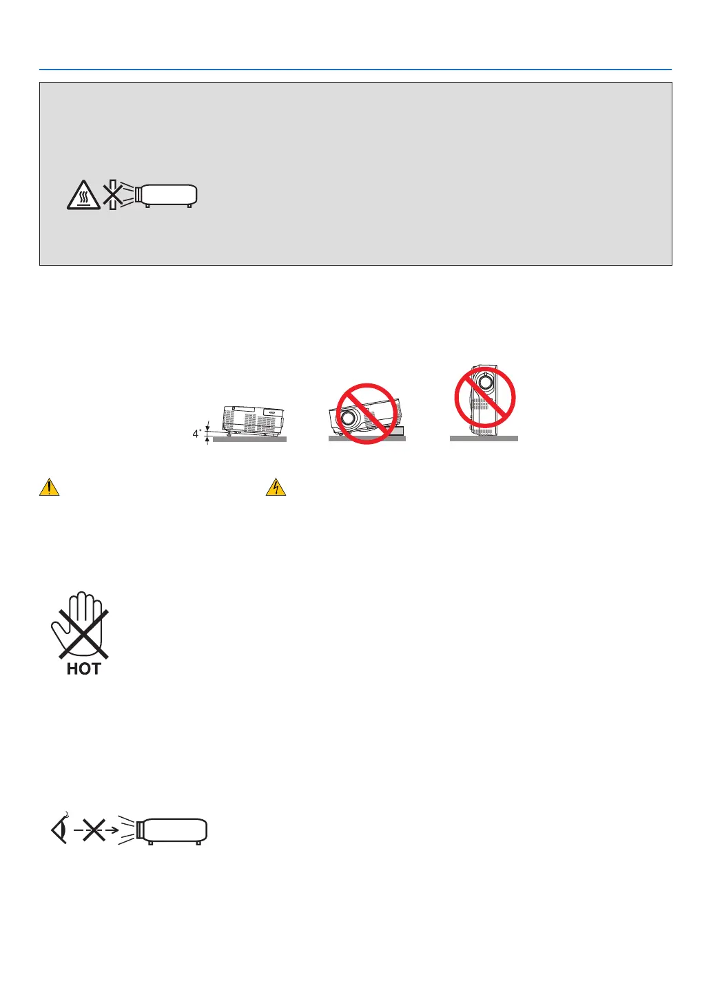 • Donotplaceanyobjects,whichareeasilyaffectedbyheat,infrontofaprojectorexhaustvent.