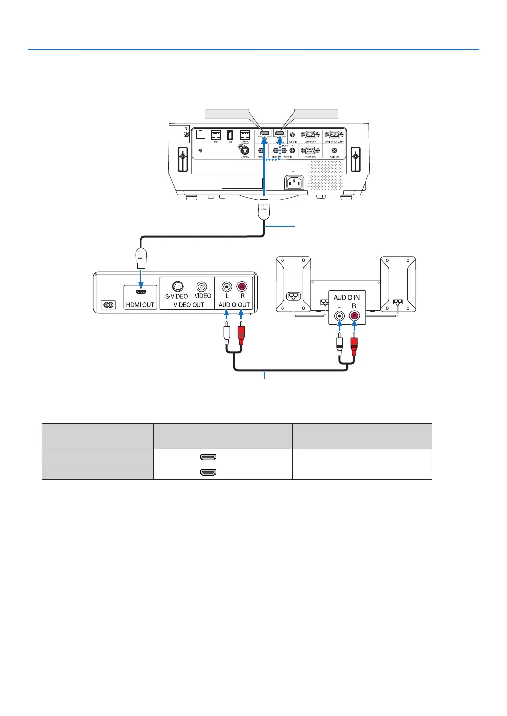 • WhenconnectingtheHDMI1INterminal(orHDMI2INterminal)oftheprojectortotheDVDplayer,theprojec-