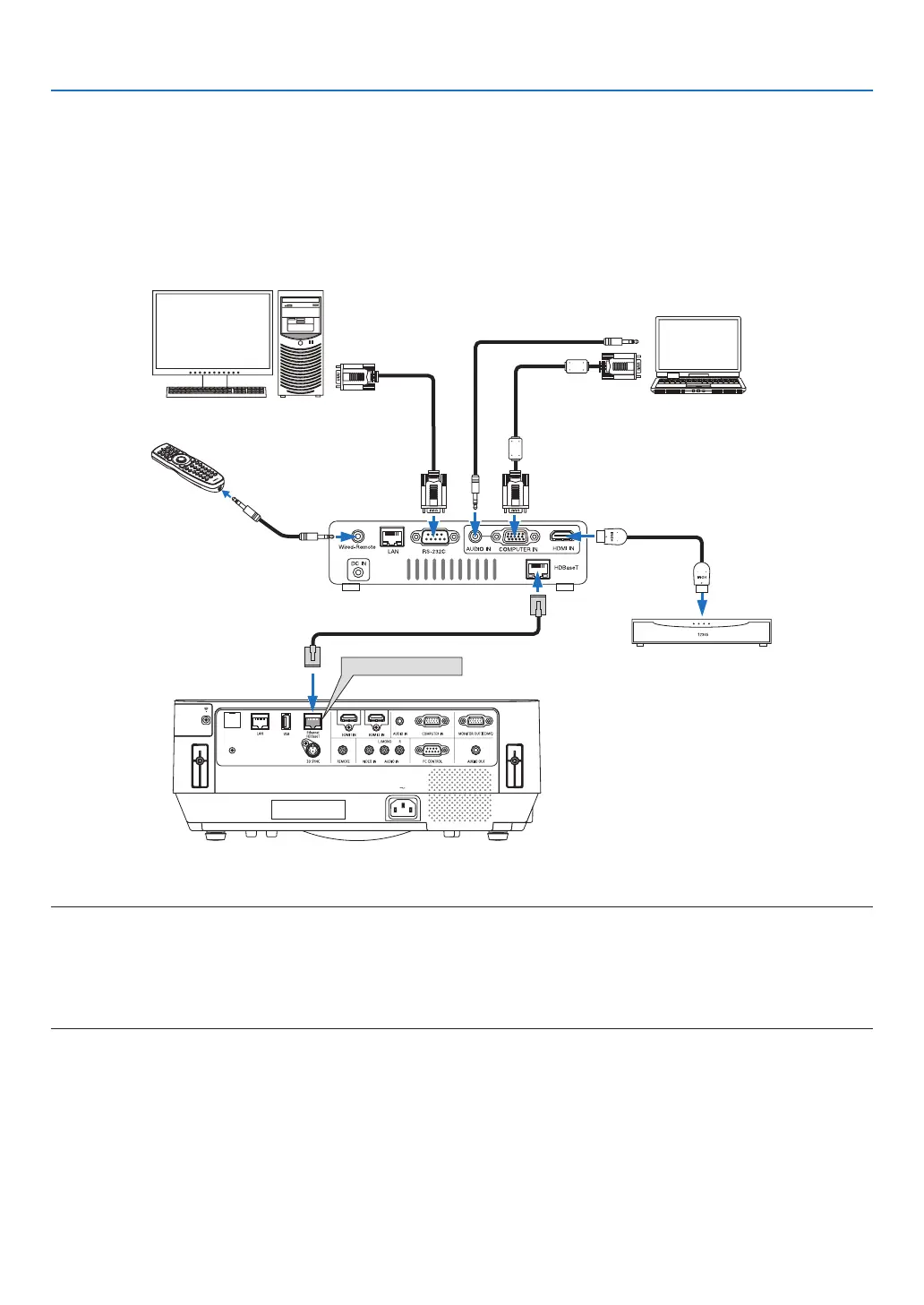 • PleasedonotuseothertransmissiondevicesbetweentheprojectorandtheHDBaseTtransmissiondevice.Thepicturequality