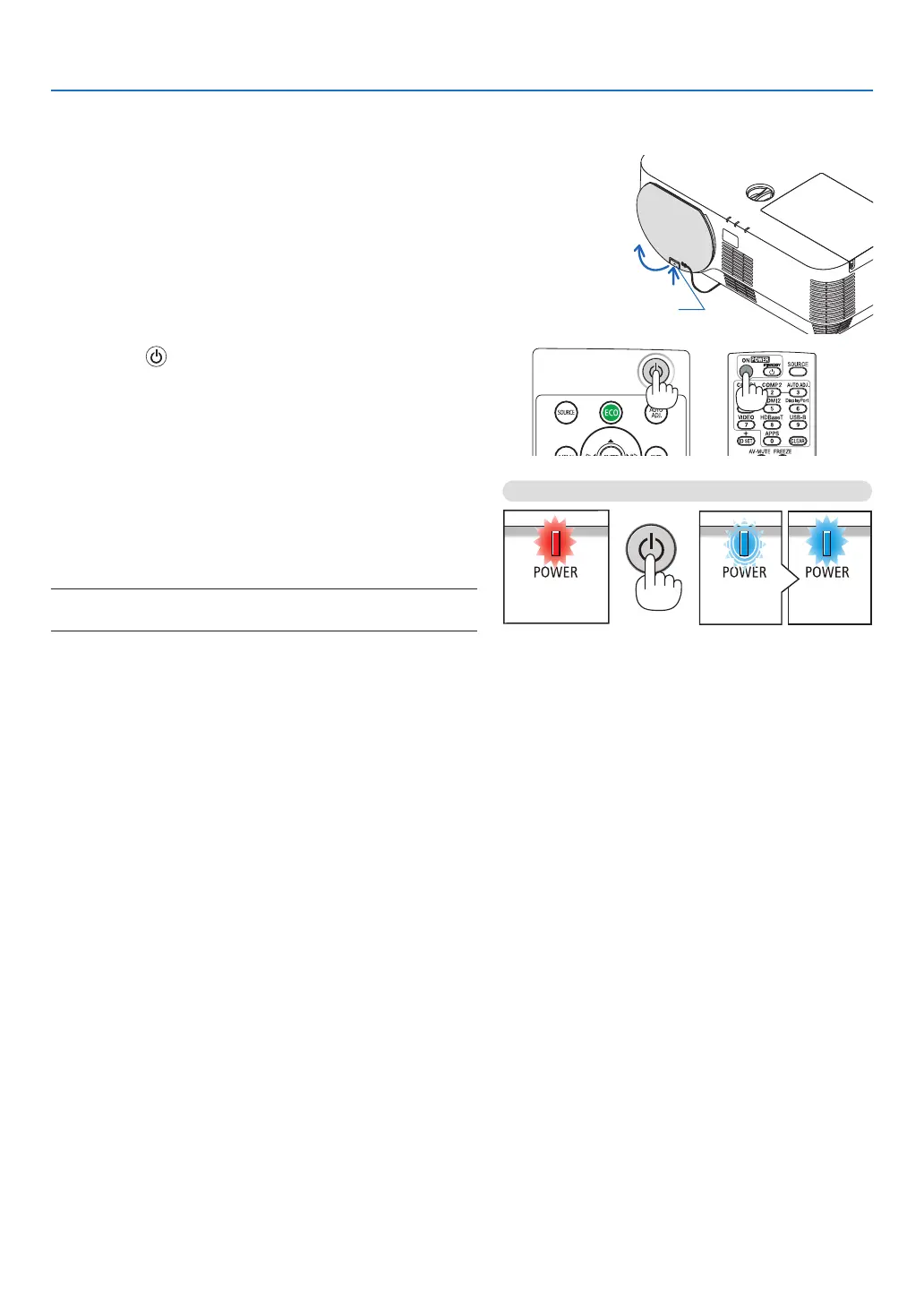 The POWER indicator lights blue and the image is projected