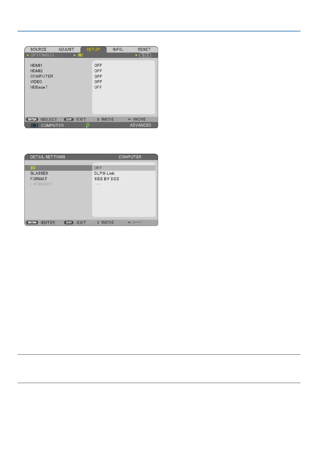 Selectinginputconnectedtoasourceof3Dimages[HDMI1/HDMI2/COMPUTER/VIDEO/