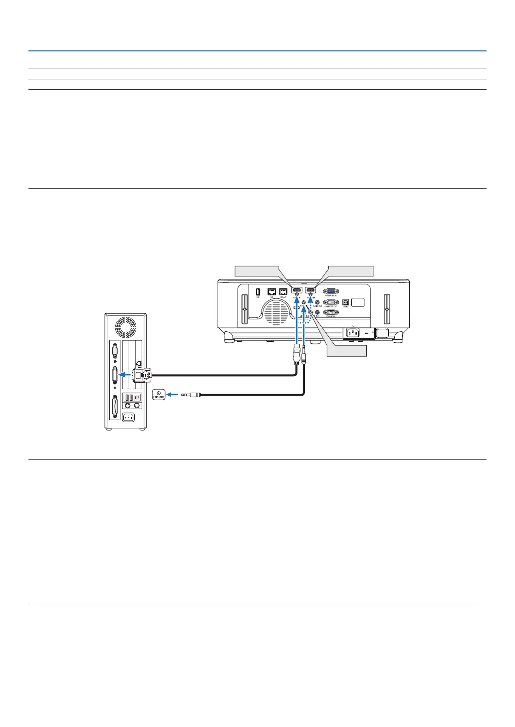 • ToprojectaDVIdigitalsignal:Connectthecables,turntheprojectoron,thenselecttheHDMIinput.Finally,turnonyourPC.