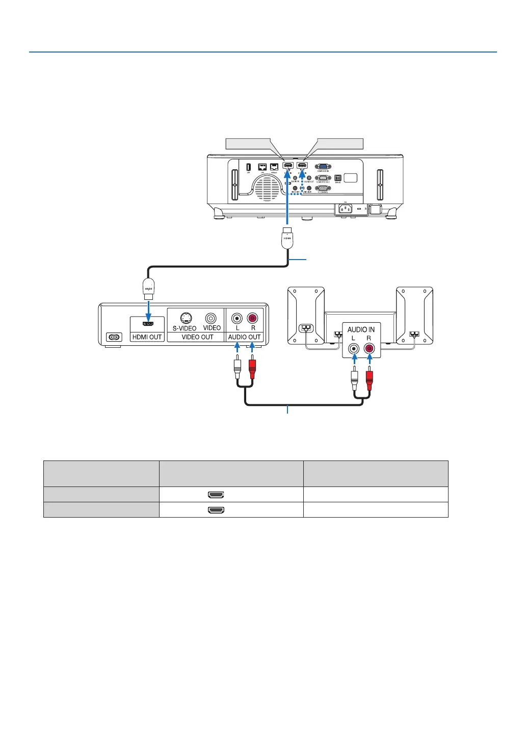 • WhenconnectingtheHDMI1INterminal(orHDMI2terminal)oftheprojectortotheDVDplayer,theprojector’s