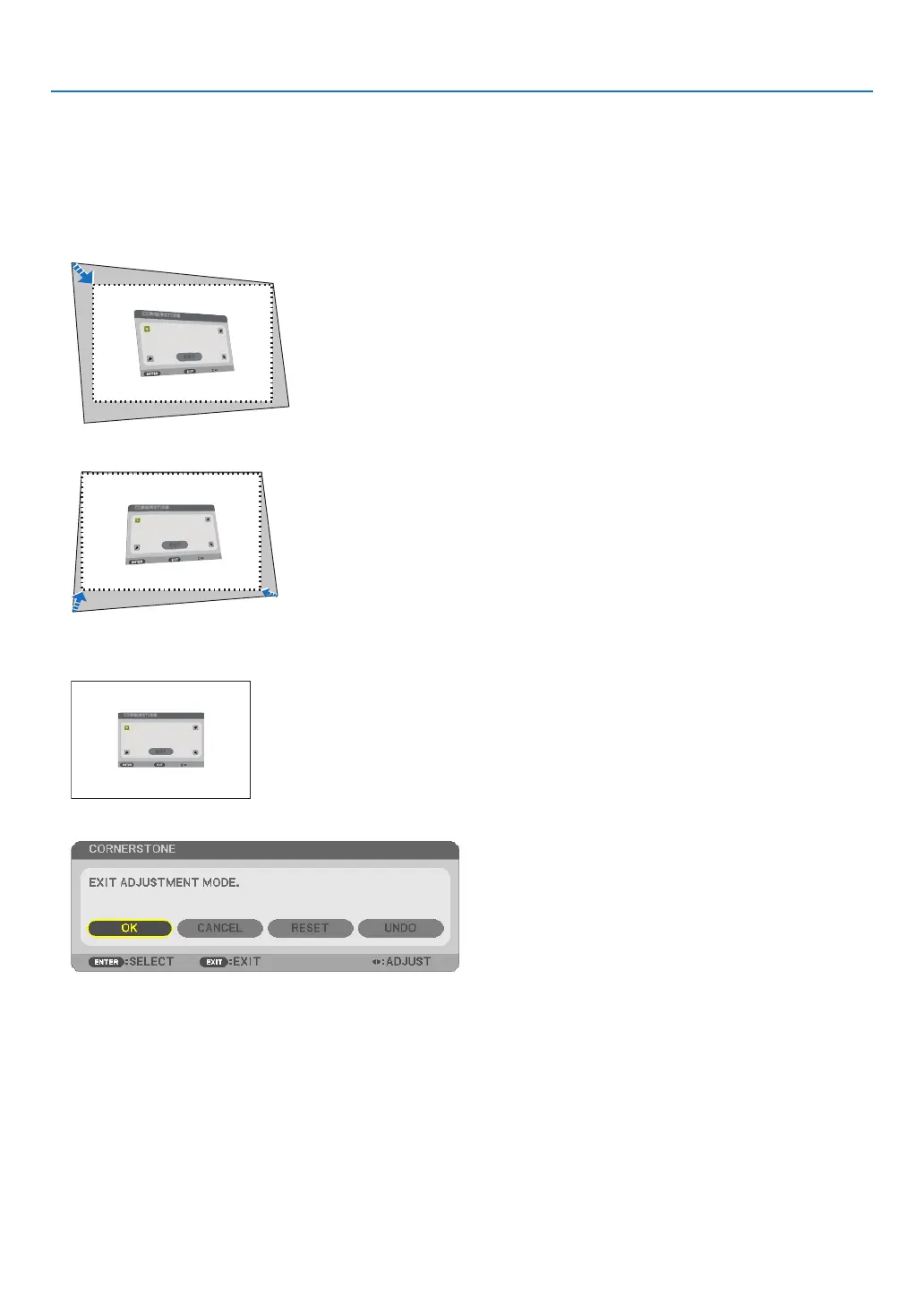 OntheCornerstoneadjustmentscreen,select[EXIT]orpresstheEXITbuttonontheremotecontrol.