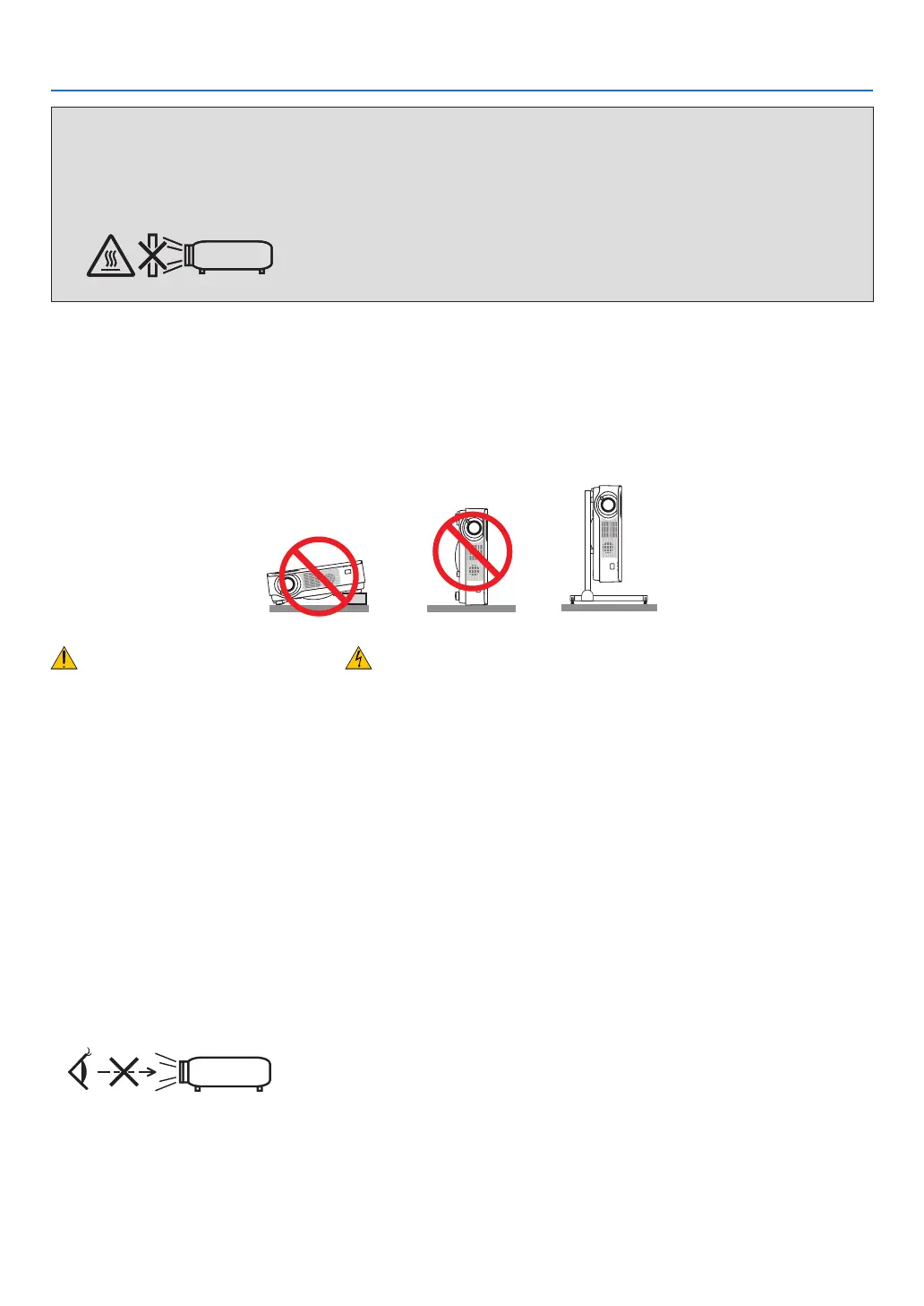 • Donotplaceanyobjects,whichareeasilyaffectedbyheat,infrontofaprojectorexhaustvent.