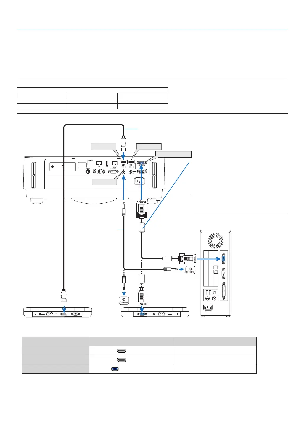 ComputercablesandHDMIcanbeusedtoconnecttoacomputer.TheHDMIcableisnotenclosedwiththeprojector.