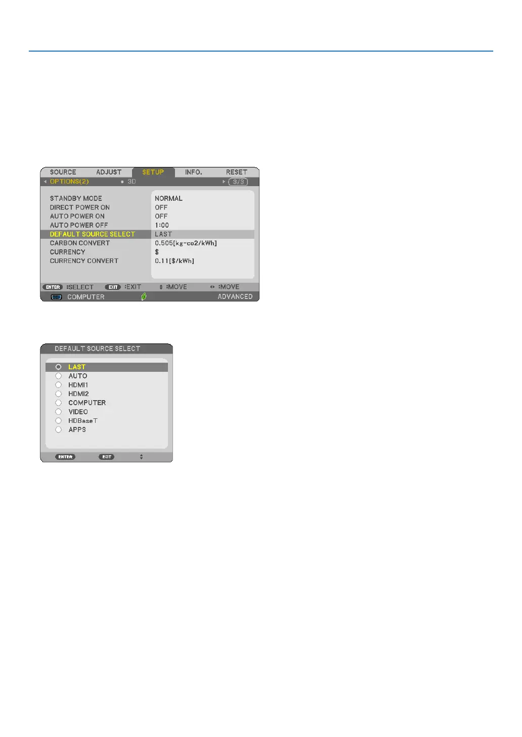 4. Press the ▼buttonvetimestoselect[DEFAULTSOURCESELECT]andpresstheENTERbutton.