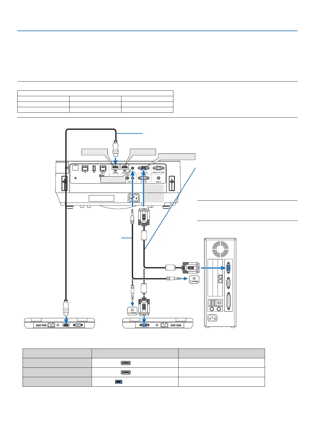 ComputercablesandHDMIcanbeusedtoconnecttoacomputer.TheHDMIcableisnotenclosedwiththeprojector.