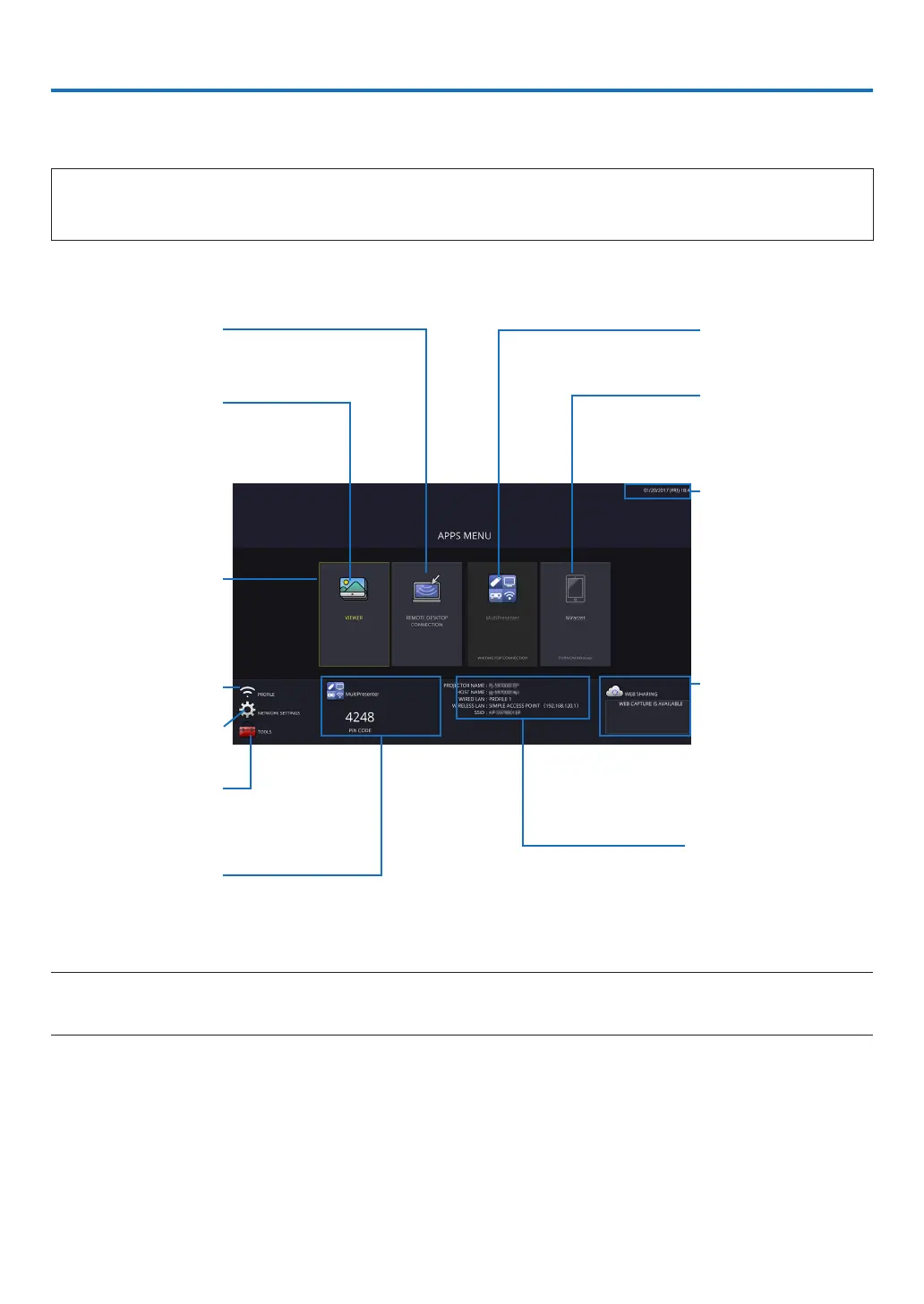 • Whenthisprojectorisnotinanetwork,youcannotselect[REMOTEDESKTOPCONNECTION],[MultiPresenter],[Miracast],and