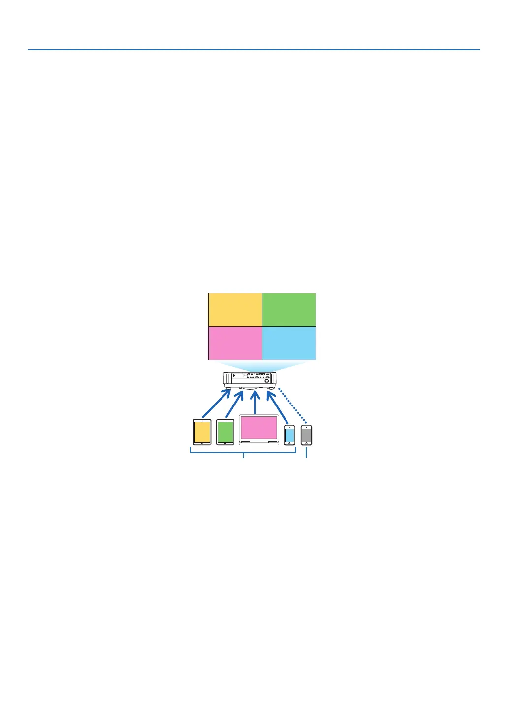 • Ifvariousterminalunitssuchasacomputer,asmartphone,andatabletareconnectedwiththeprojectorinthe