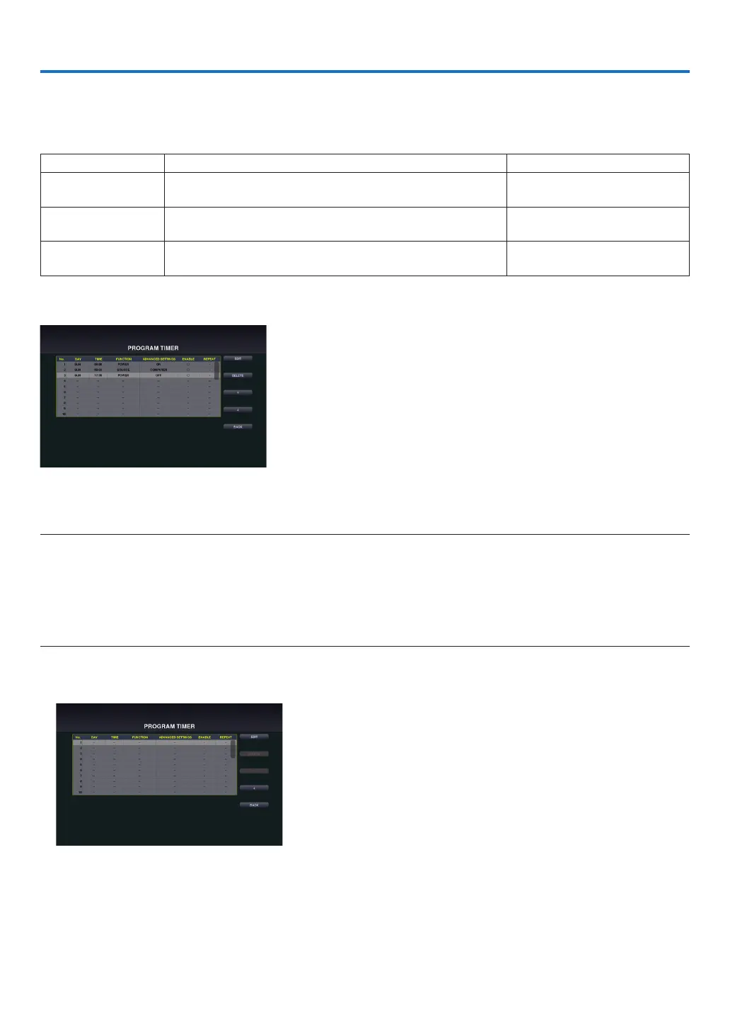 • Beforeusing[PROGRAMTIMER],makesurethatthe[DATEANDTIME]featureisset.(→ page 35)