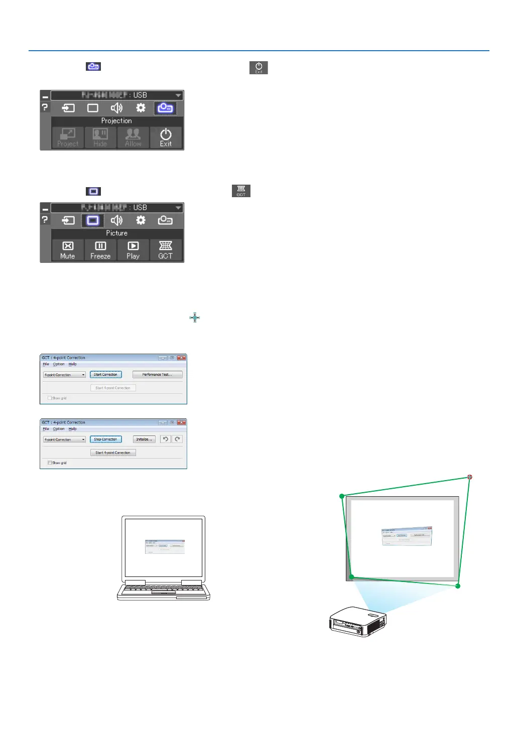 4. Click the“ ”(Projection) icon and then the“ ”(Exit)