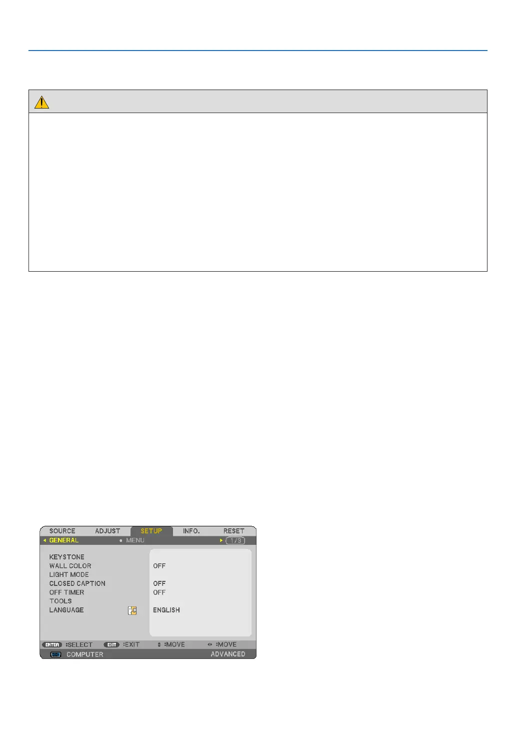 The [SETUP] menu will be displayed.