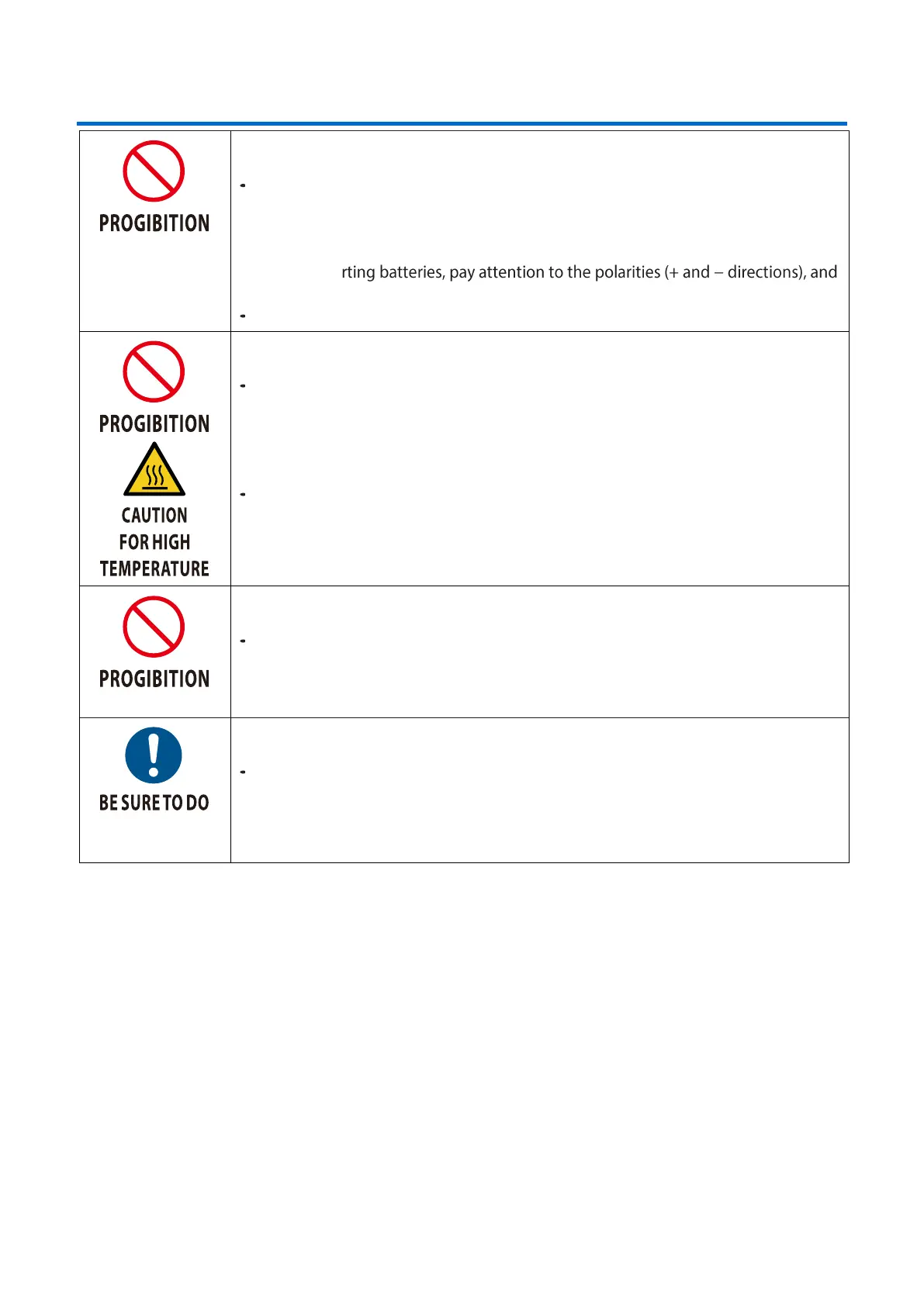 - Do not use batteries other than those specified.