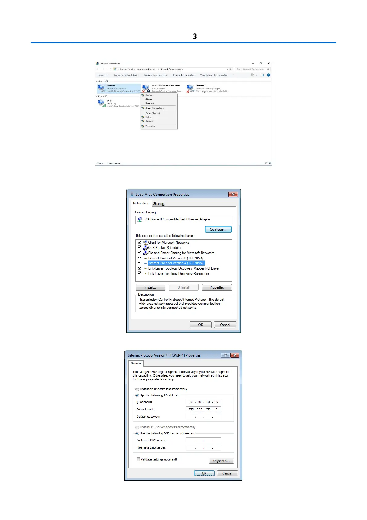 6. Click Use the following IP address and fill in the IP address and Subnet mask, then click OK.