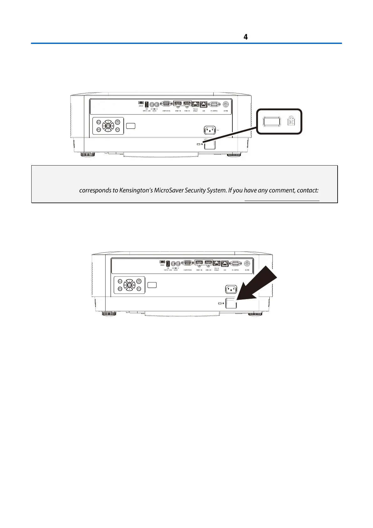 If you are concerned about security, attach the projector to a permanent object with the security slot and a security cable.