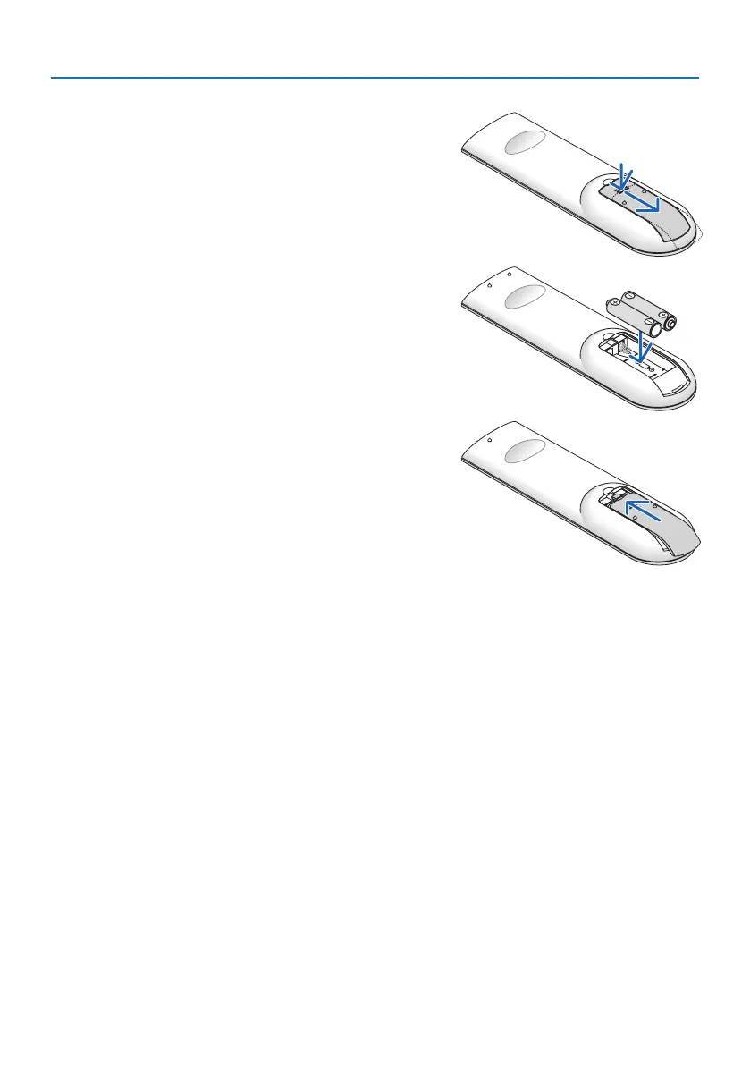 • If you will not be using the remote control for a long time, remove the batteries.