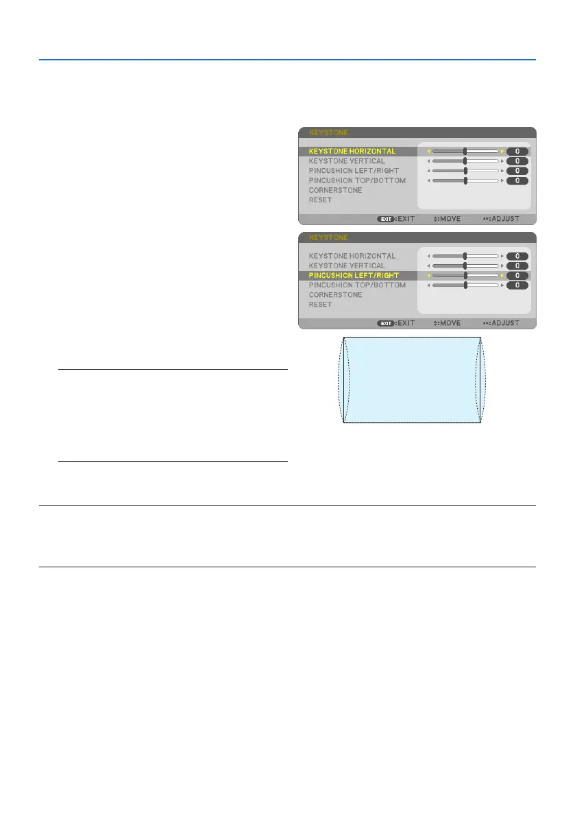 • The [PINCUSHION LEFT/RIGHT] or [PINCUSHION TOP/BOT-