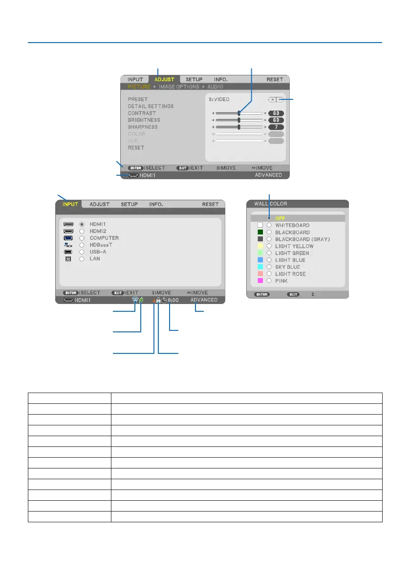 Menu mode Indicate the [ADVANCED] menu or [BASIC] menu.