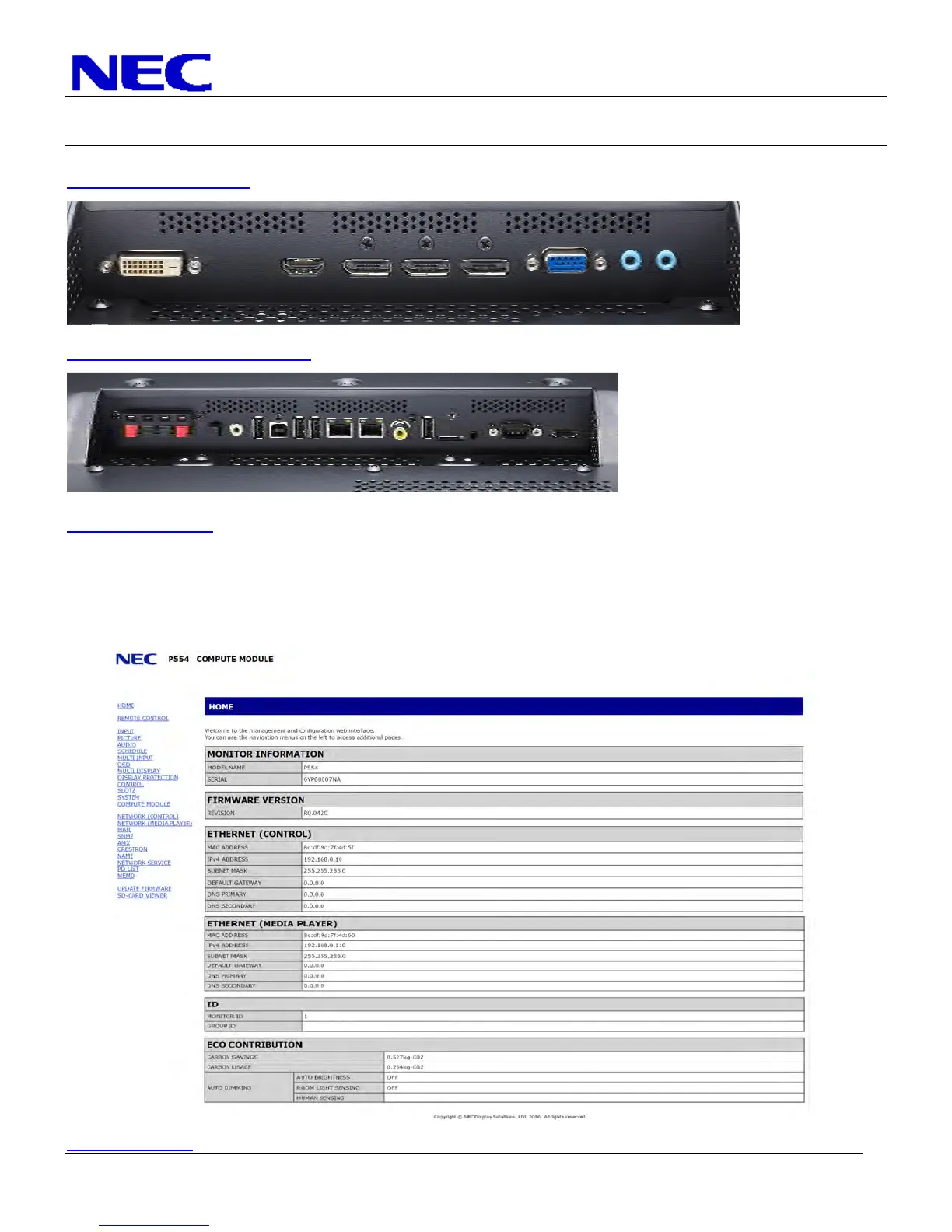 accessed from the Monitor’s menu or directly using separate IP Address. IP Address for Media Player is set to 192.168.0.110 for