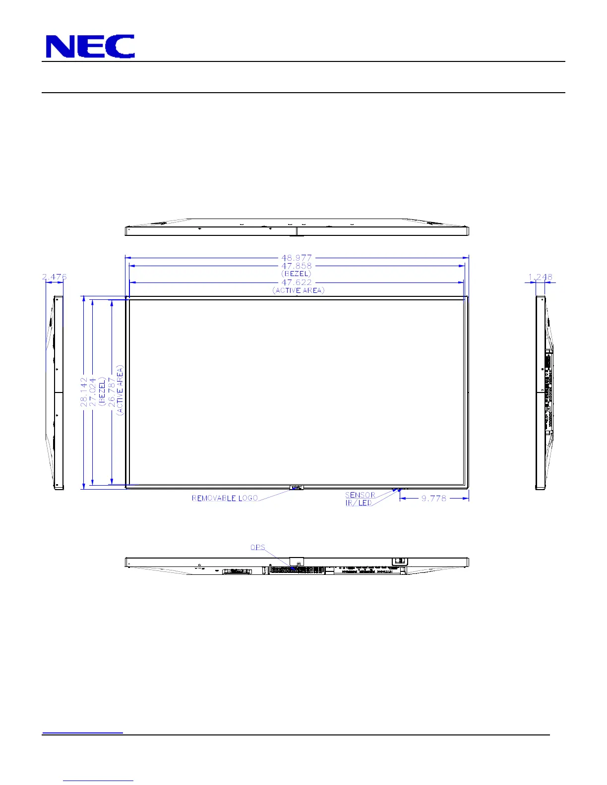 NEC P554 - Display Dimensions