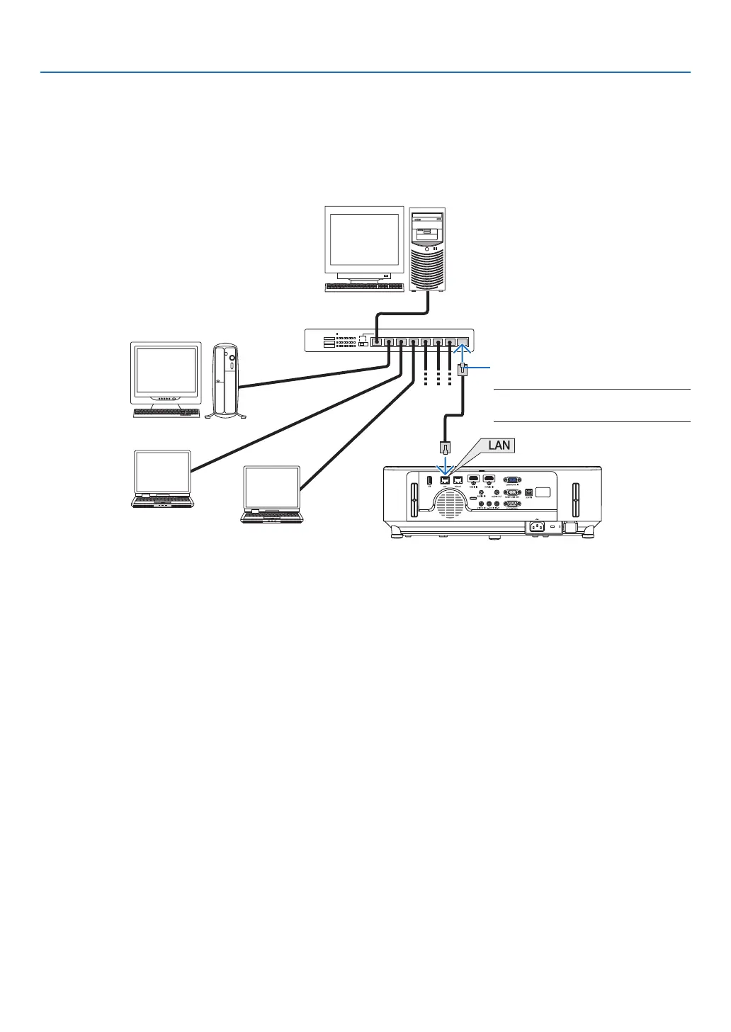 TheprojectorcomesstandardwithaLANport(RJ-45)whichprovidesaLANconnectionusingaLANcable.