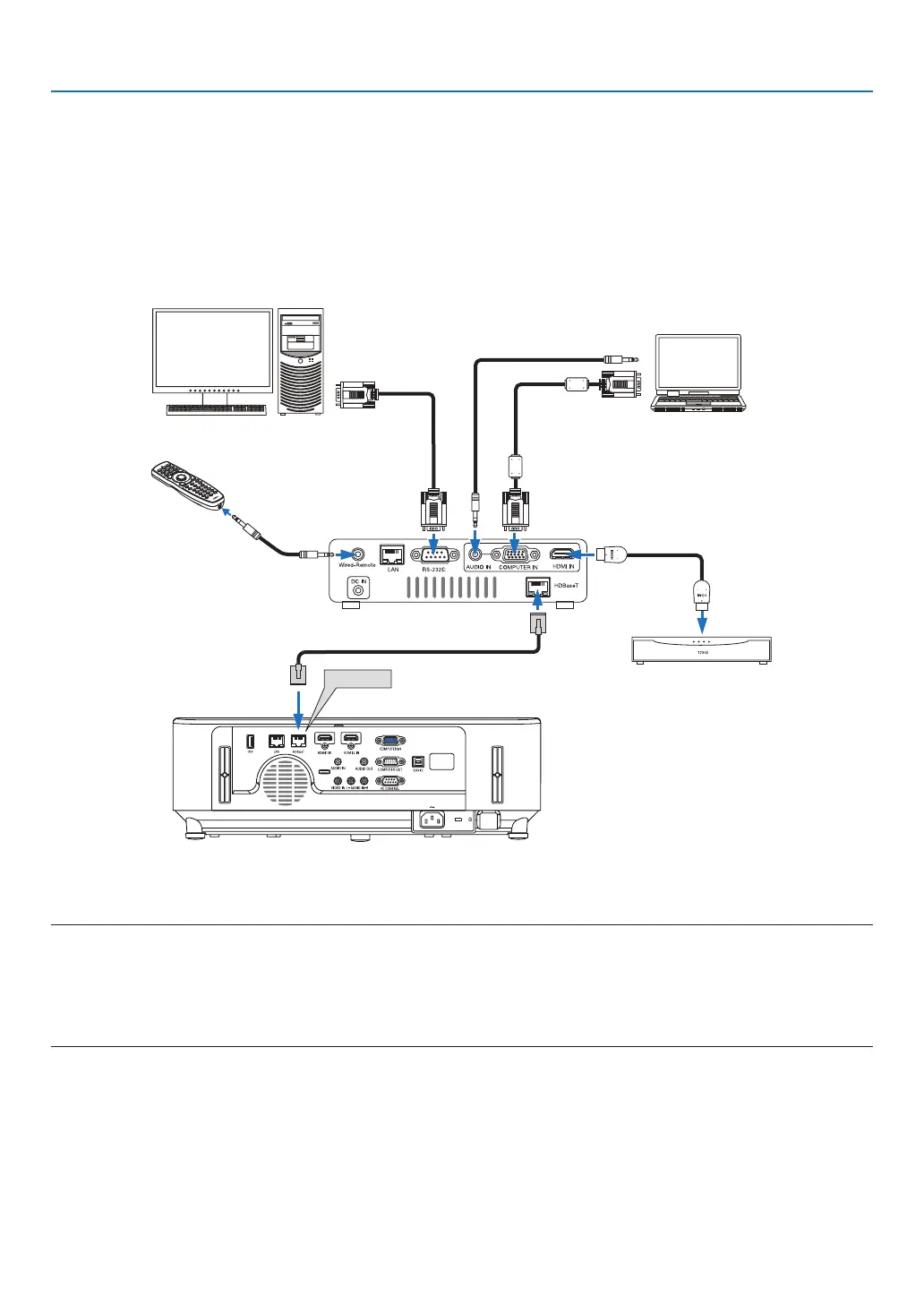 UseaLANcablesoldcommerciallytoconnecttheHDBaseTportoftheprojector(RJ-45)toaHDBaseTtransmis-