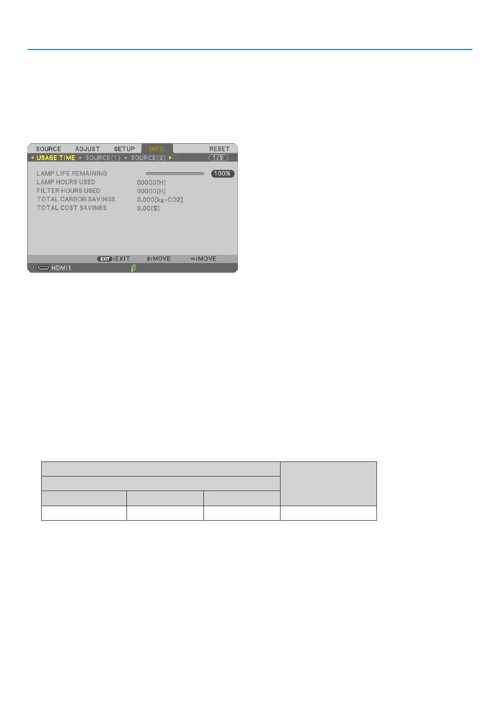 Thevalueinformsyouoftheamountoflampusage.Whentheremaininglamptimereaches0,theLAMPLIFE