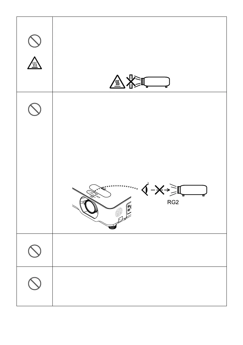 maßnahme hin, keine Gegenstände vor dem Objektiv des Projektors zu platzieren.