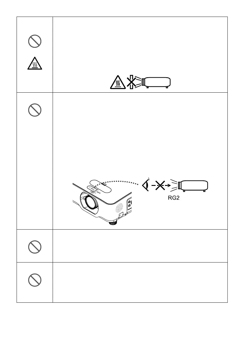 • Il seguente pittogramma, che è indicato vicino all’obiettivo del proiettore, indica che
