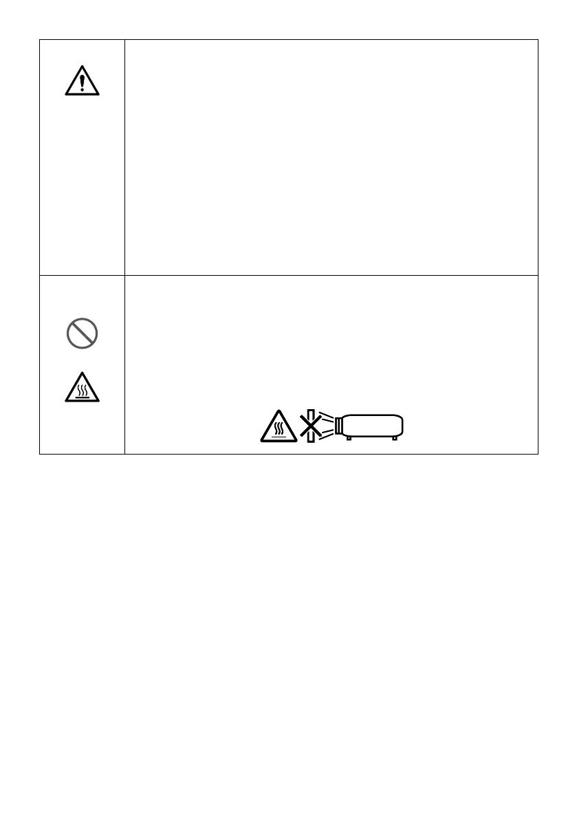 projector is operating. The object could get hot and be broken or catch re.