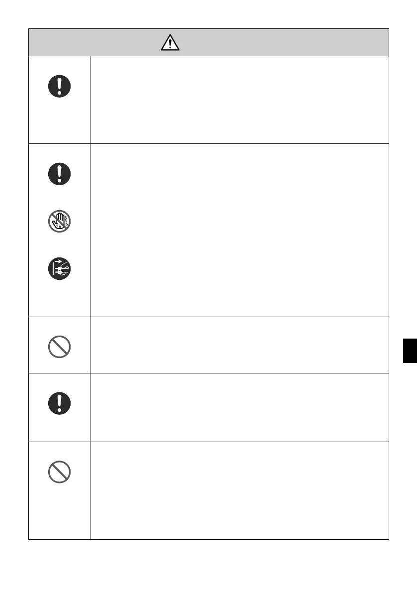 ordentligt isatt. Lös anslutning av nätkabeln kan leda till eldsvåda eller elektriska stötar.