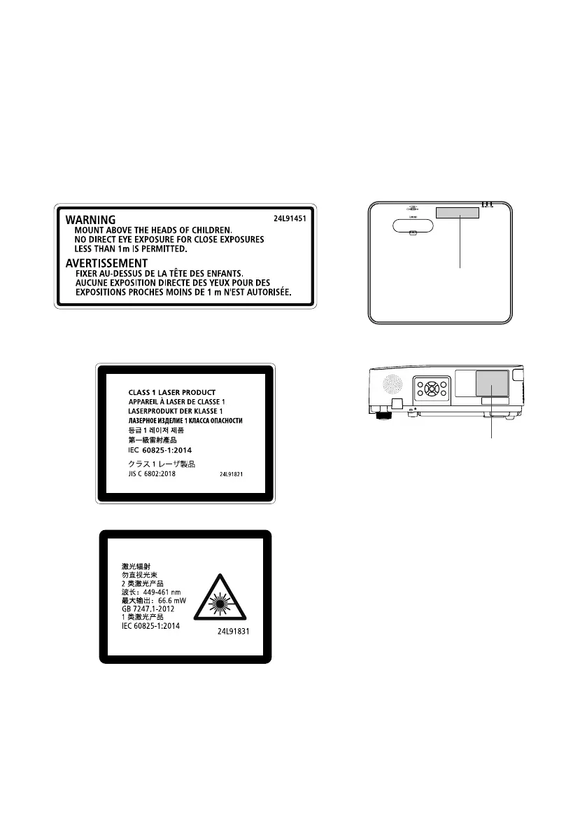 Varningsetiketter och förklarande etiketter för klass 1 LASERPRODUKT i enlighet med IEC 60825-1 tredje utgåvan