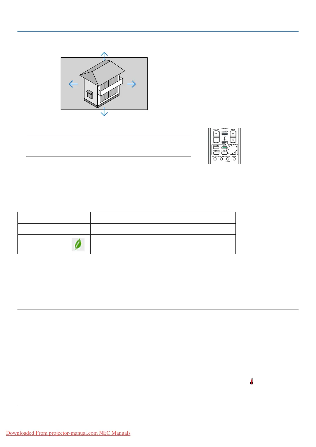 • Afteralapseof1minutefromwhentheprojectordisplaysablue,blackorlogoscreen,[ECOMODE]willautomaticallyswitchto