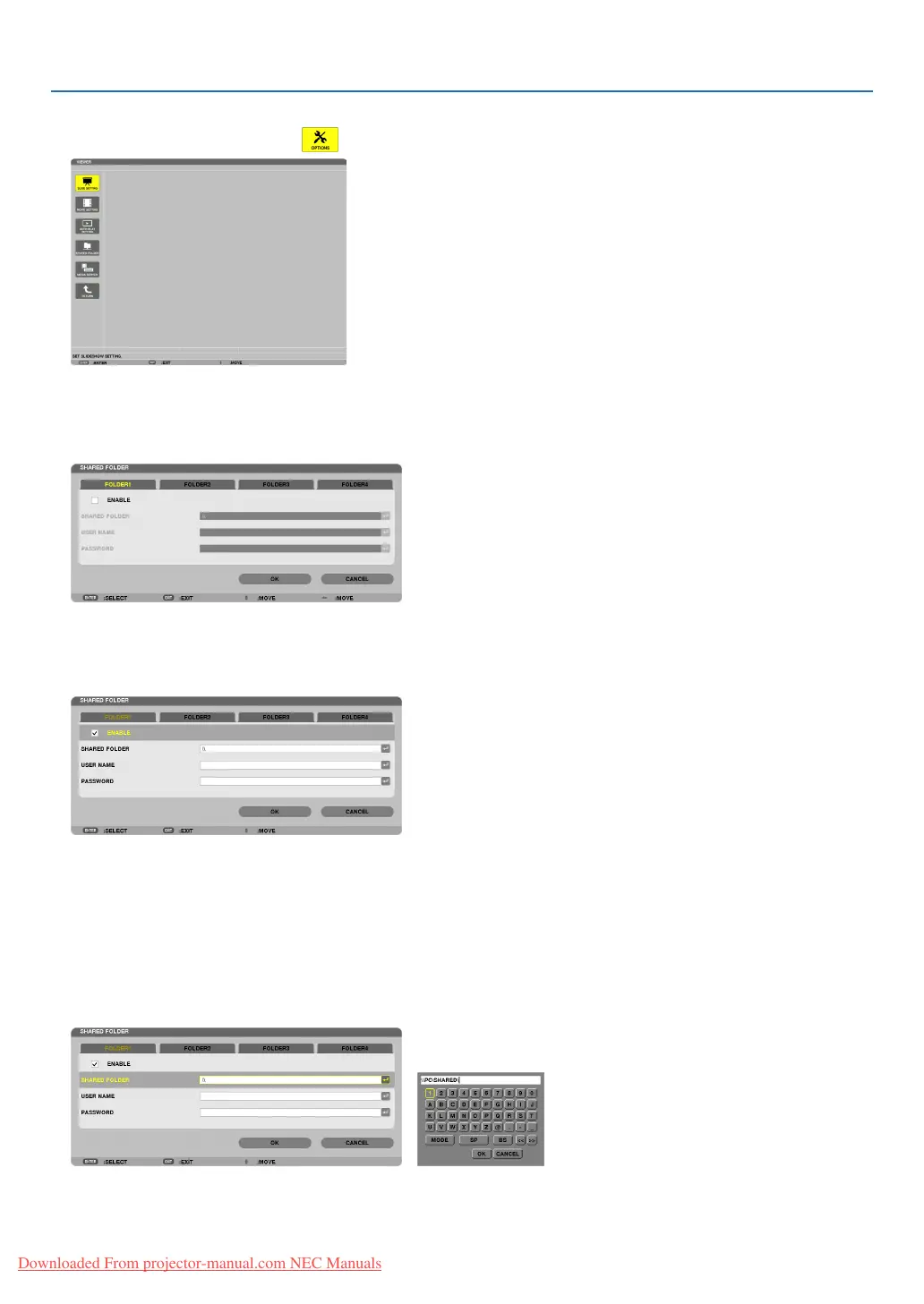 Press the ▼ button to select the [SHARED FOLDER] field. The software keyboard will be displayed.