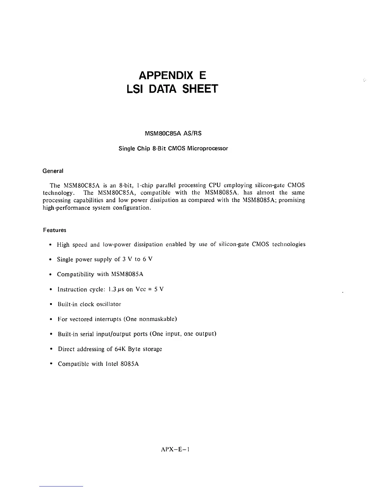hlShI80C85.4, conlpatible with the hlSh18085A. has alrnost the same