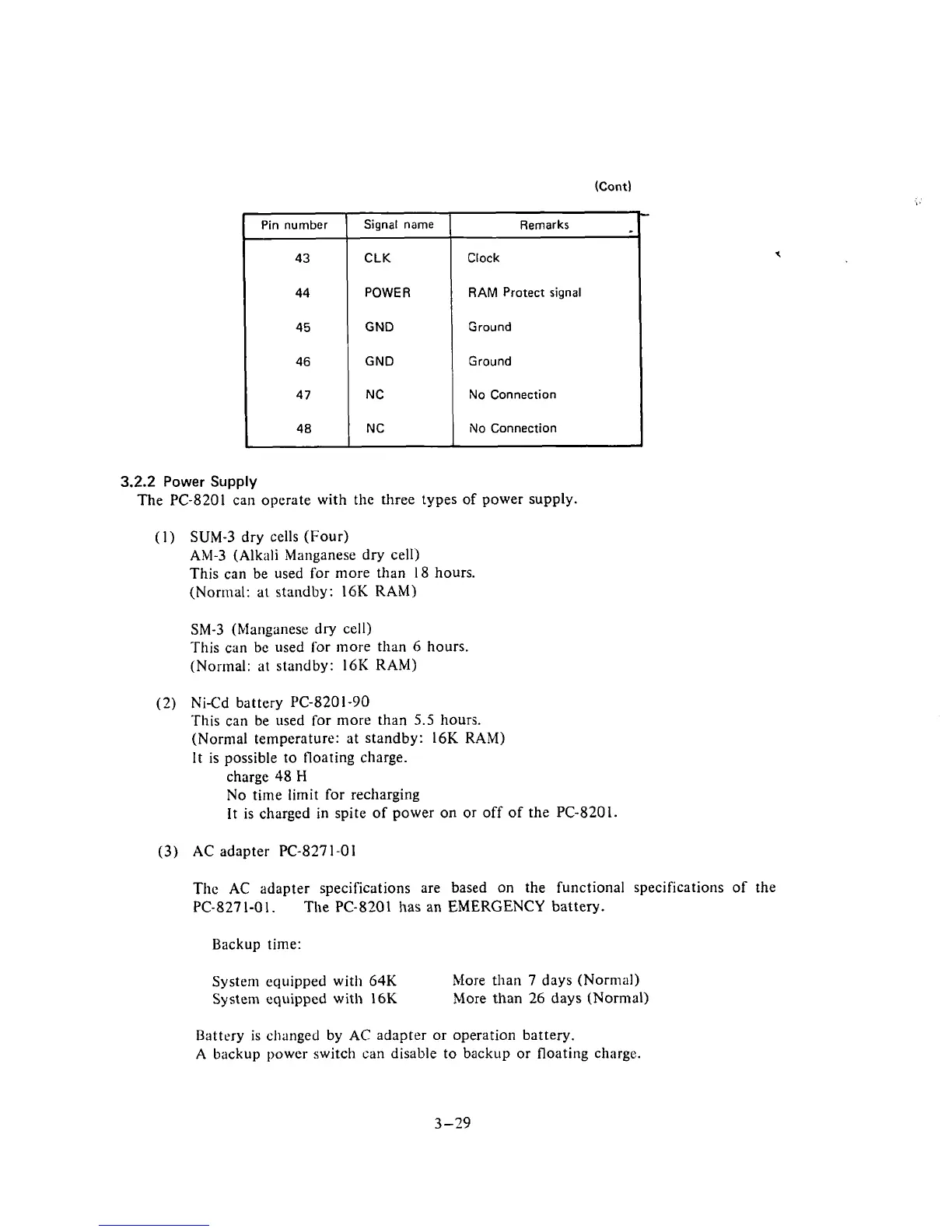 The PC-8201 can operate with the three types of power supply.