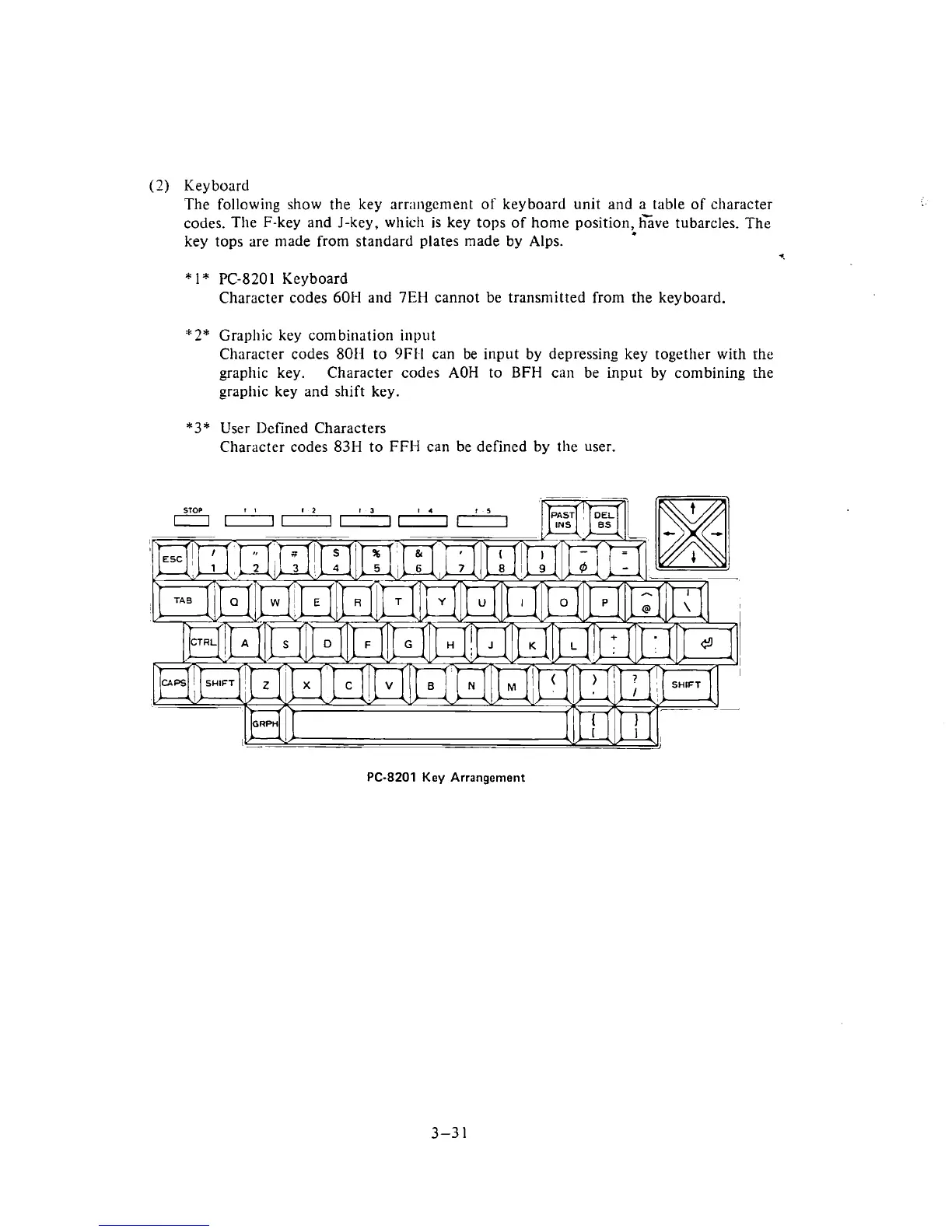 The following show the key arrangement of keyboard unit and a table of character