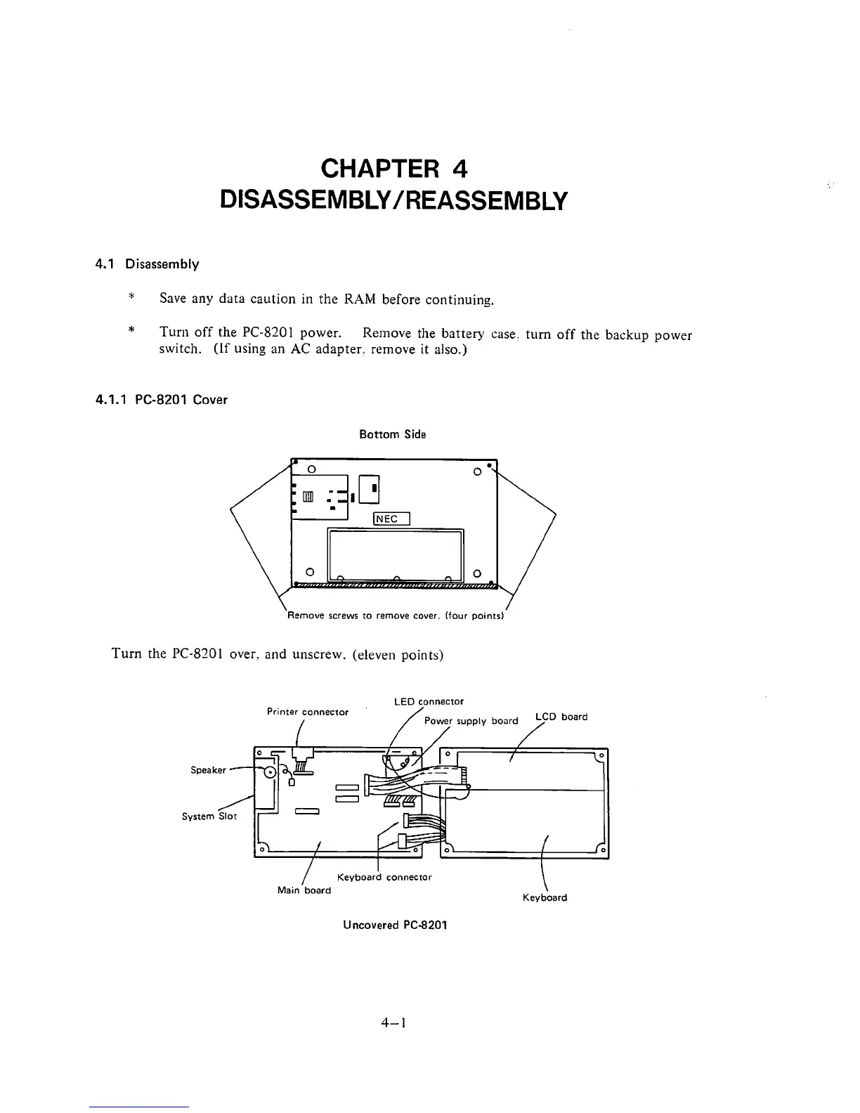 NEC PC-8201 - Chapter 4 Disassembly;Reassembly; Disassembly; PC-8201 Cover