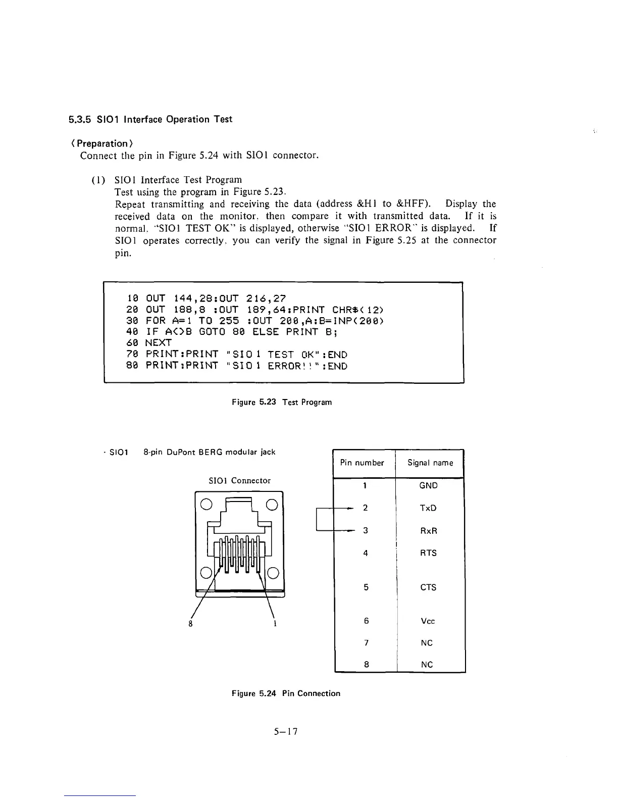 TEST OIC" is displayed, otherwise "SIOl ERROR" is displayed.