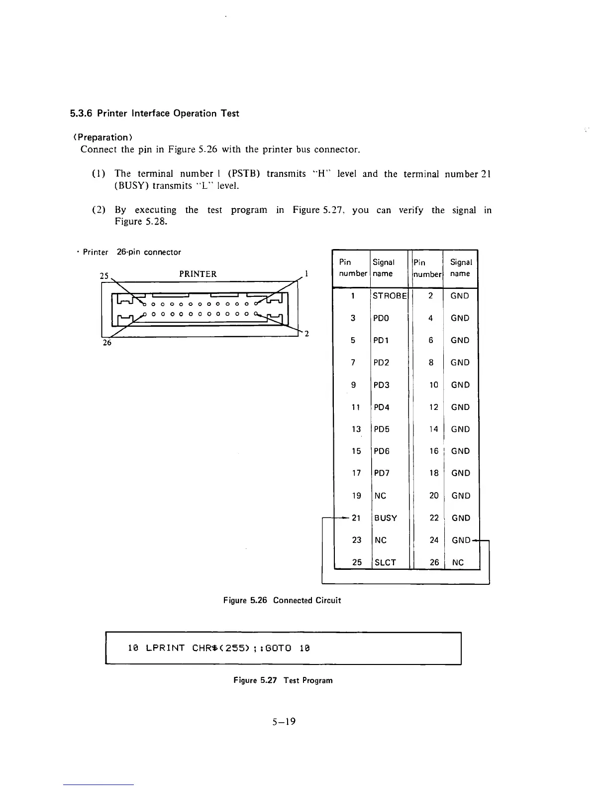 Printer Interface Operation Test