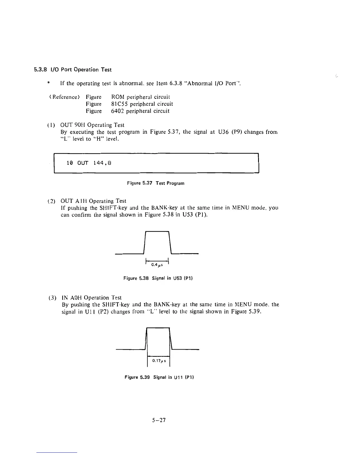 By executing the test program in Figure 5.37, the signal at U36