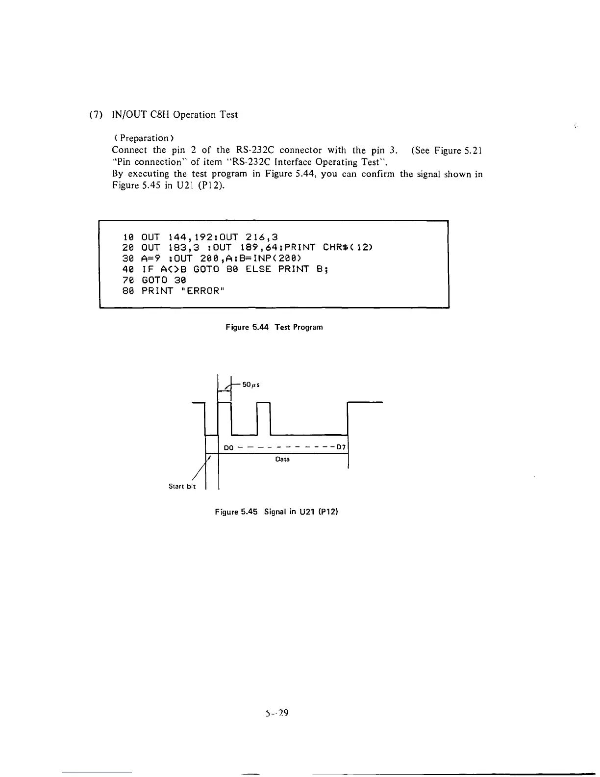 "Pin connection" of item "RS-232C Interface Operating Test".