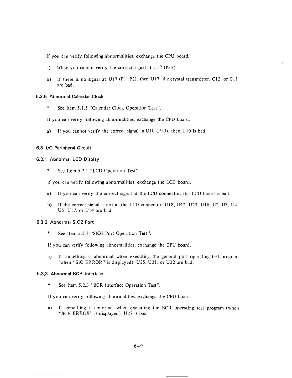 "SIO ERROR" is displayed). U25. U21. or U22 are