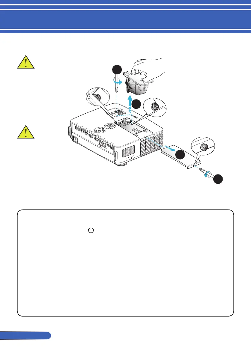 6. Loosen 2 screws on the lamp module and pull up the handle.