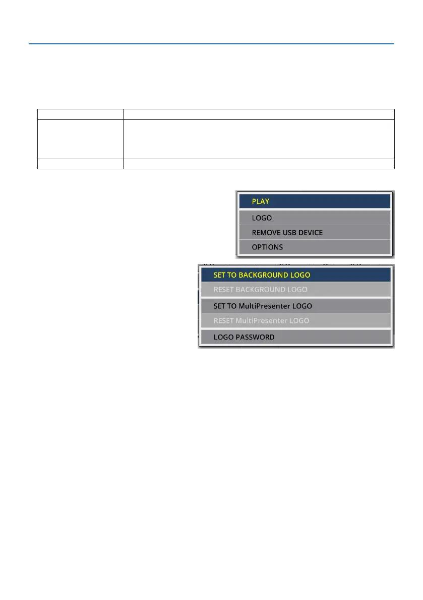 1. Movethecursorto[SETTOBACKGROUNDLOGO]or[SETTOMultiPresenterLOGO]inthe