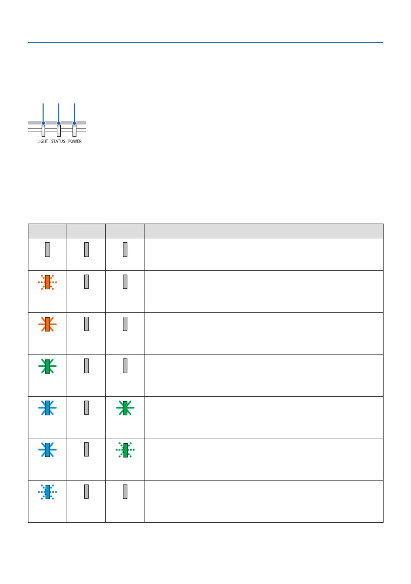 LOCK] enabled, or when an error occurs in the projector.