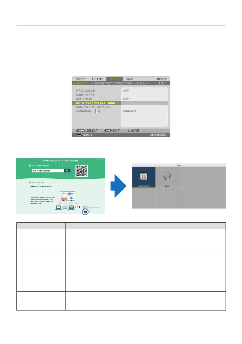 9-10. Setting the date and time in the projector