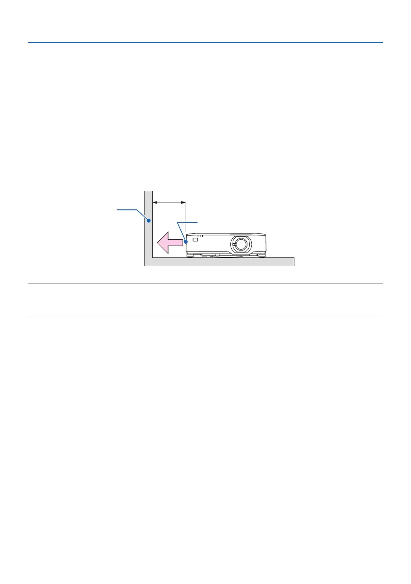 • Intheabovegure,itisassumedthatthereissucientspaceabovetheprojector.Thereisalsoanintakeventontheback.Leave